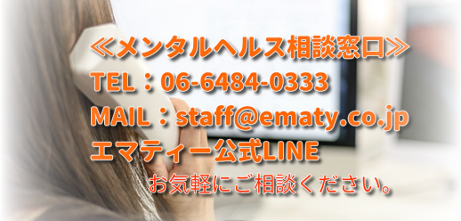 エマティーではひとりひとりが活力に満ちて業務に取り組んでいただけるように、笑顔溢れる環境づくりを目指しております。 そこで、弊社ではエマティーで働くスタッフの方々の為に、「メンタルヘルス」お……